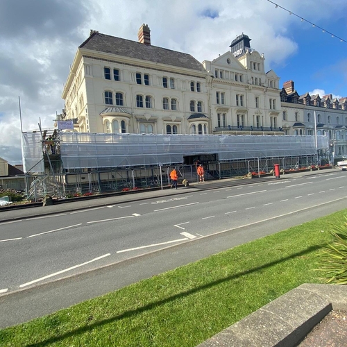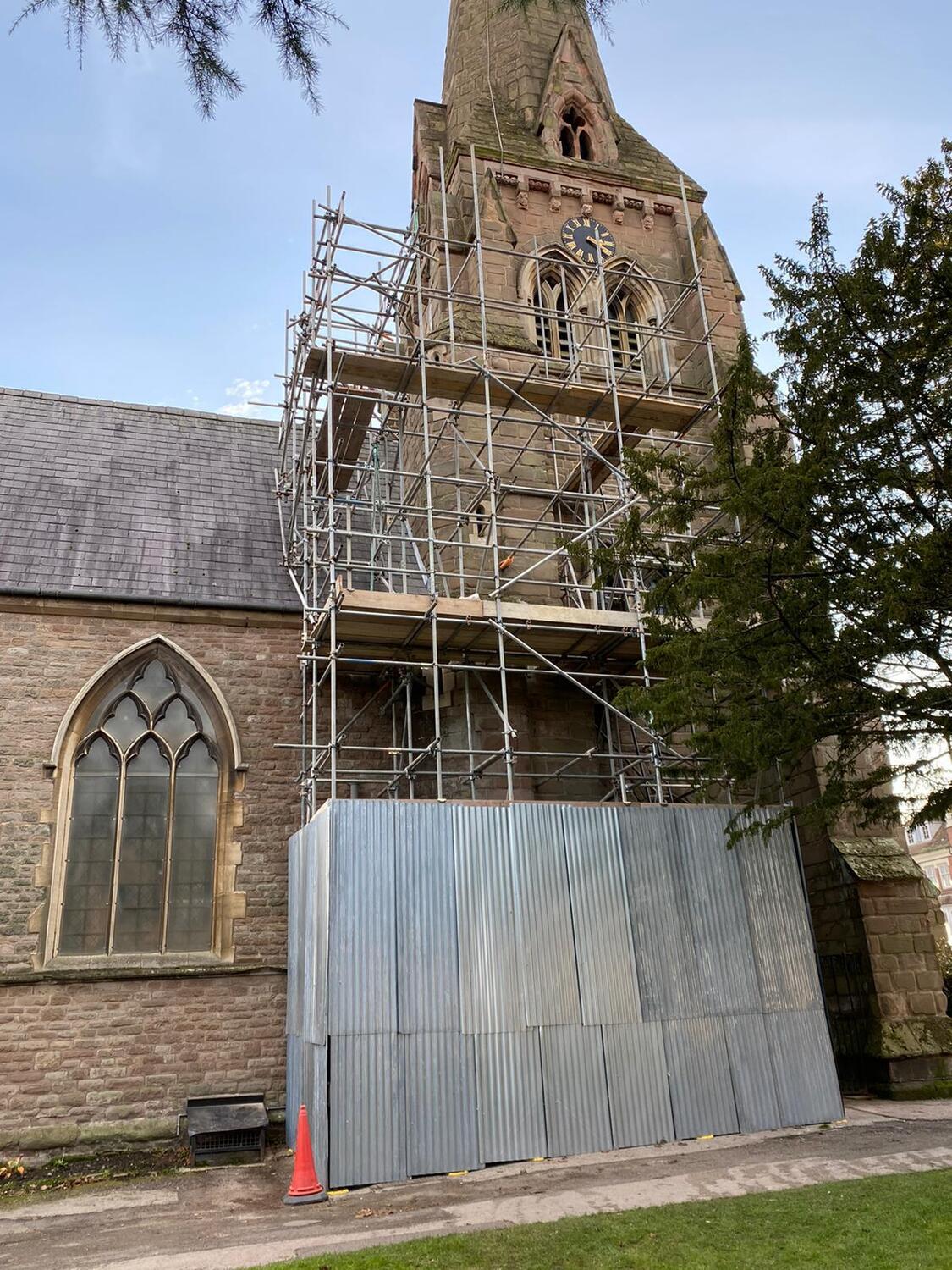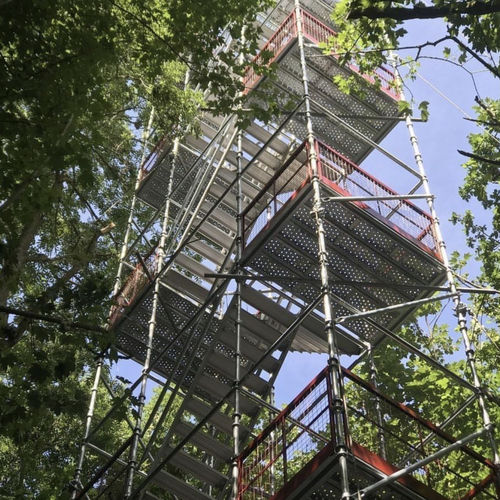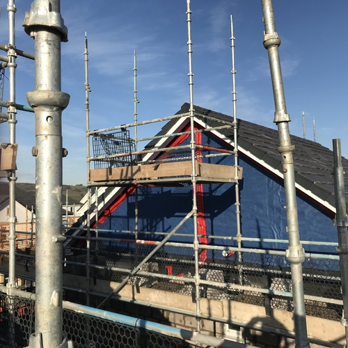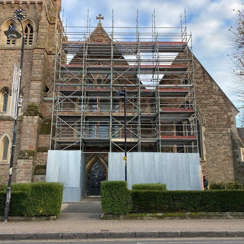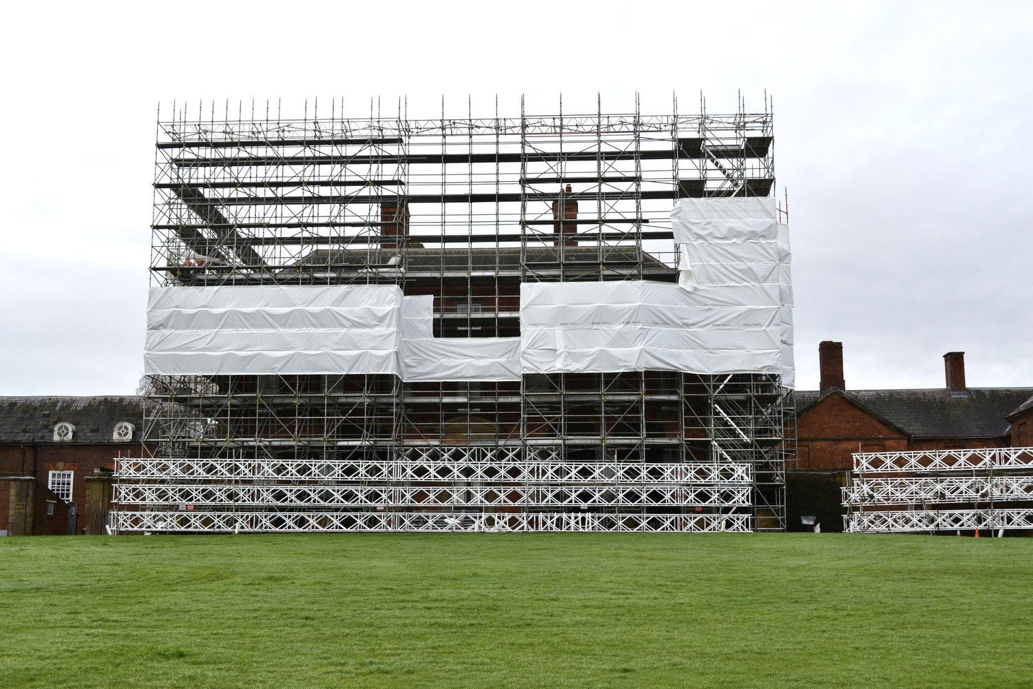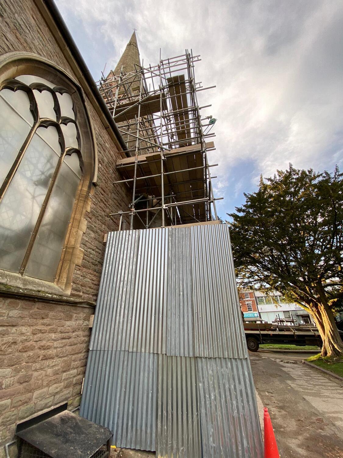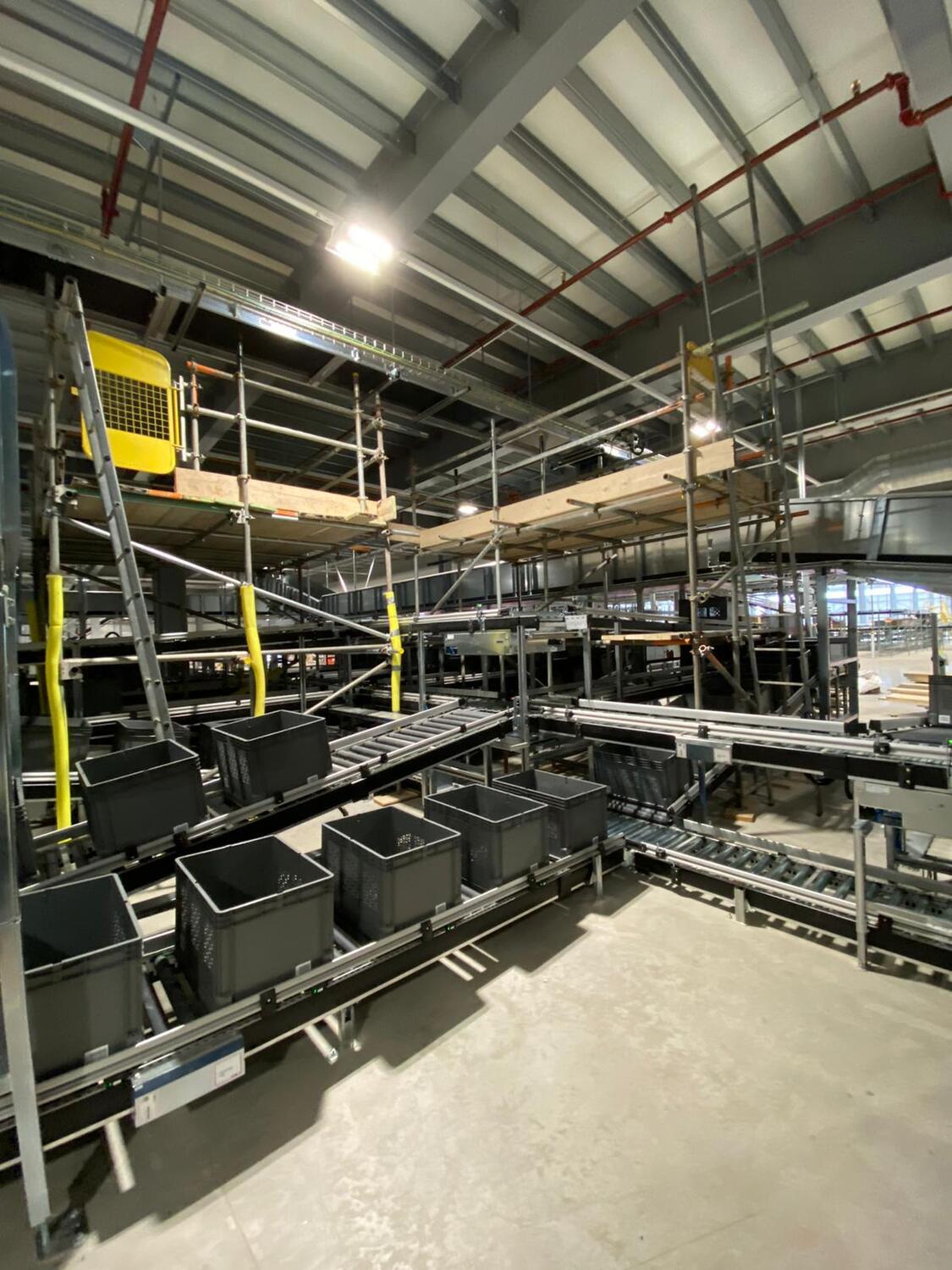 Portway Scaffolding has been tasked to provide a high level access platform to the underside of an atrium on a new prestigious head office building. The design is complicated due to the differing depths of ring beam steel, so in one area the 750mm beams are connected directly to the underside of the steel frame, in other area they are connected to scaffold tube, hung from the underside of the steel frame. The design has had to take into account the reduced capacity of the steel frame. Temporary access scaffold has been erected to the perimeter of the atrium one level below the roof with a 5 board wide cantilever, so that our scaffolders can walk the beams through and connect them to their final fixing point. Due to the reduced loadings of the ground slab, we are using a JLG x25 to act as