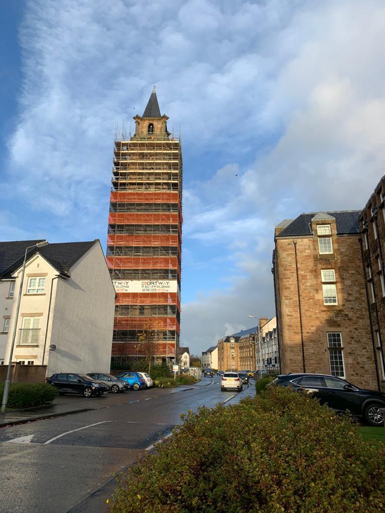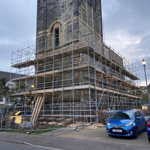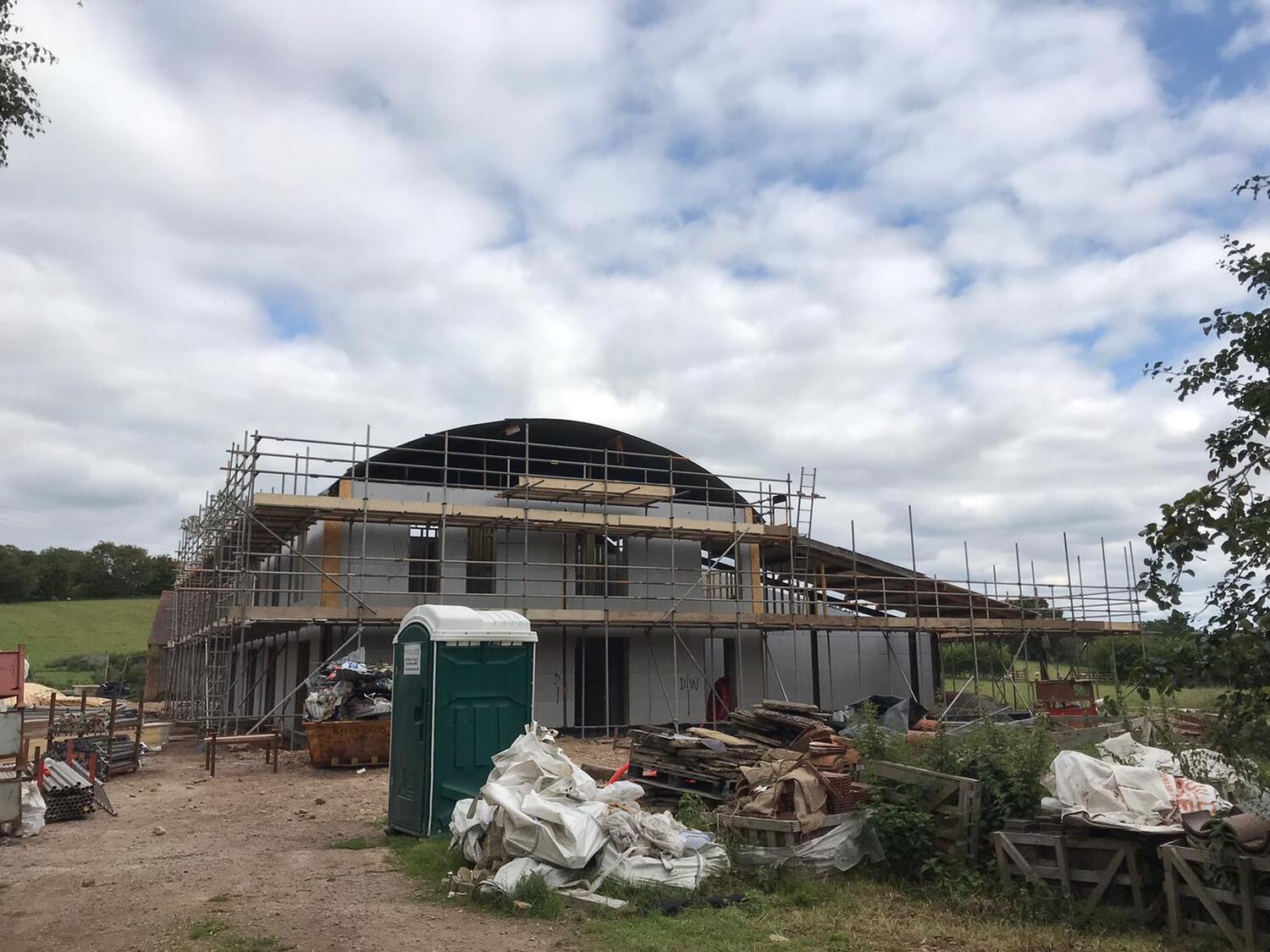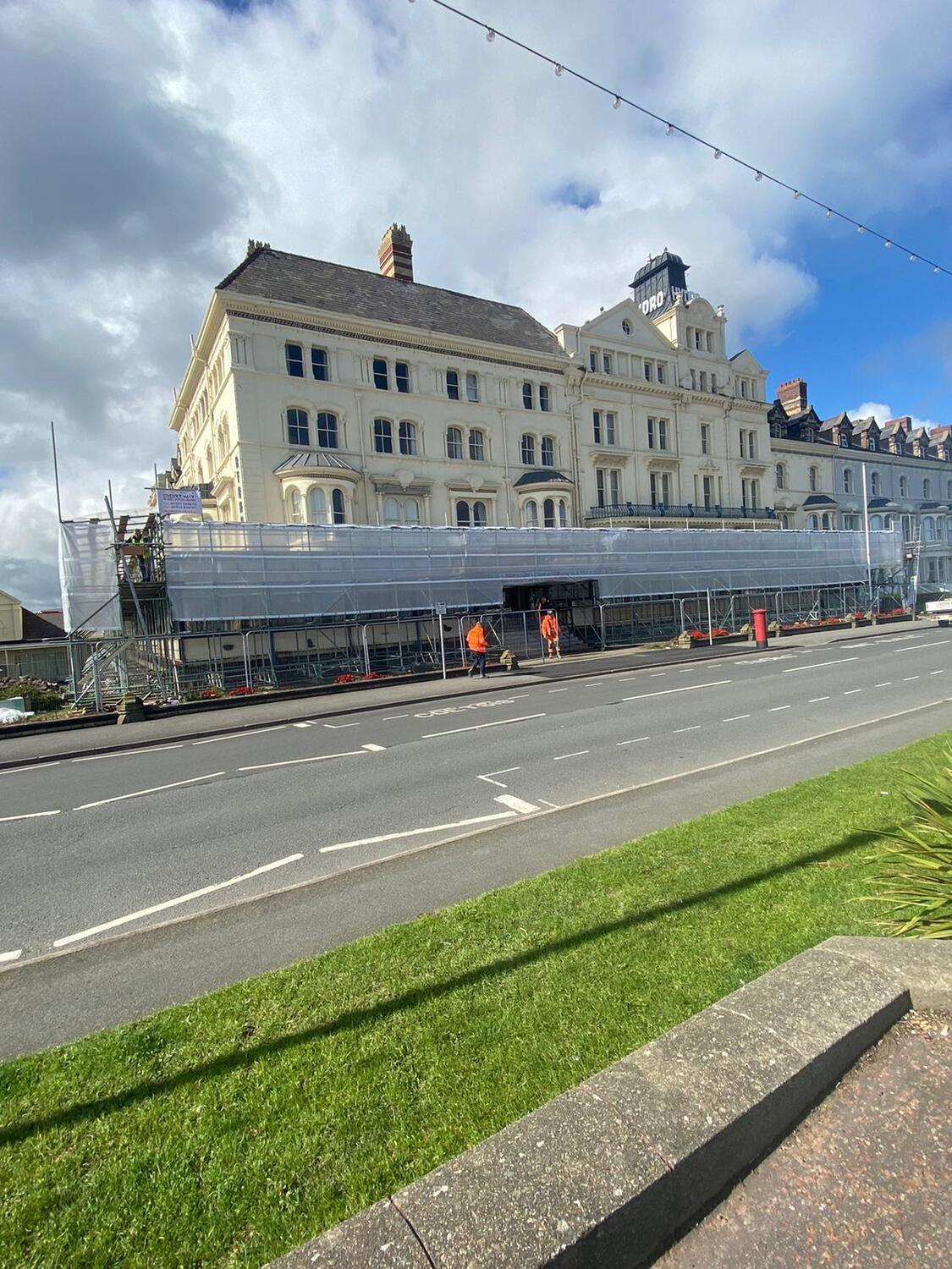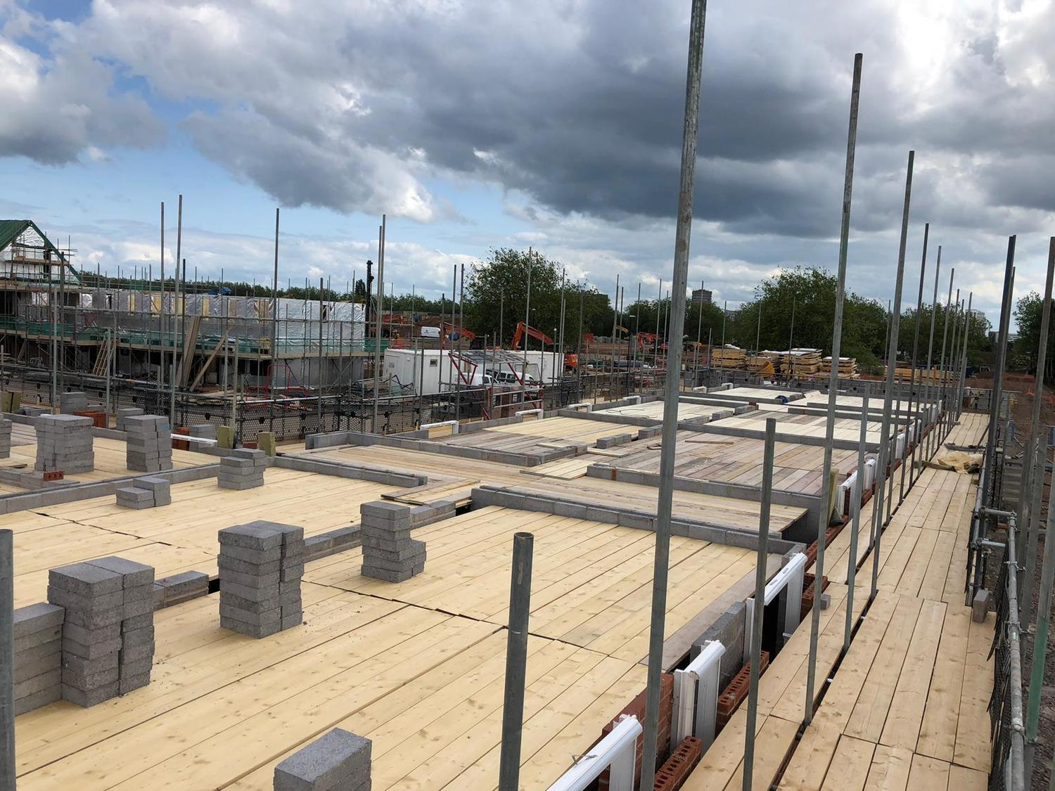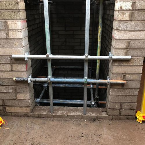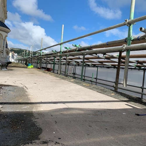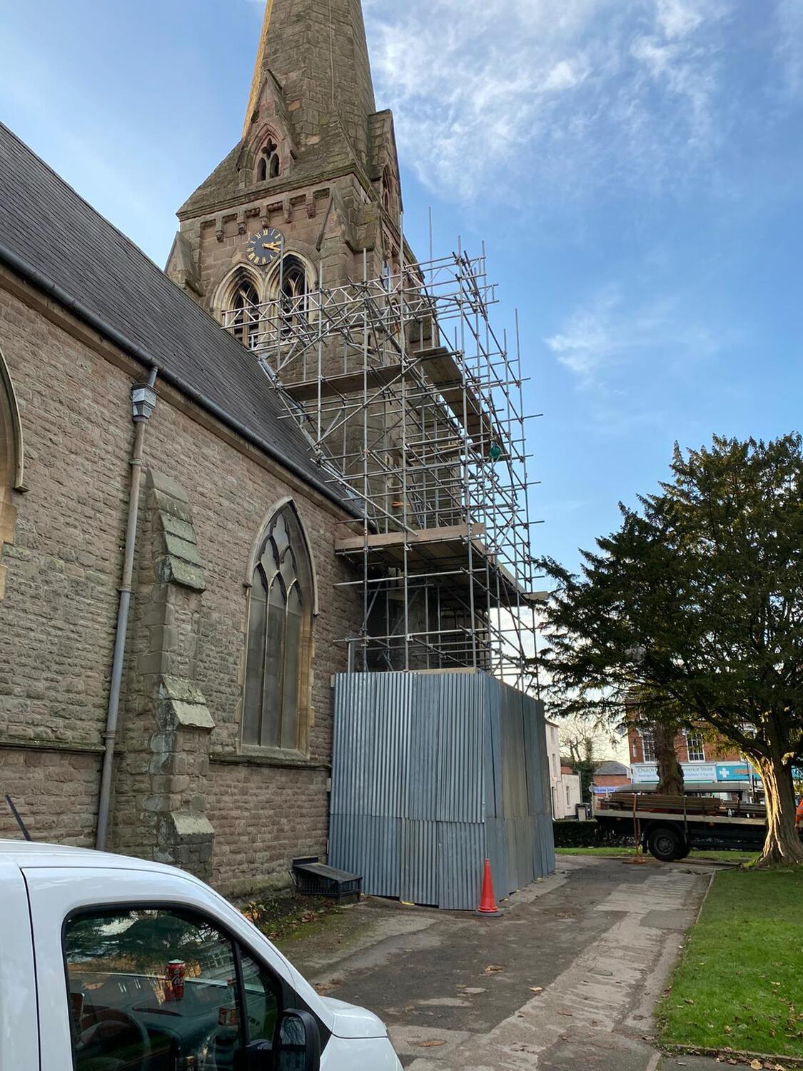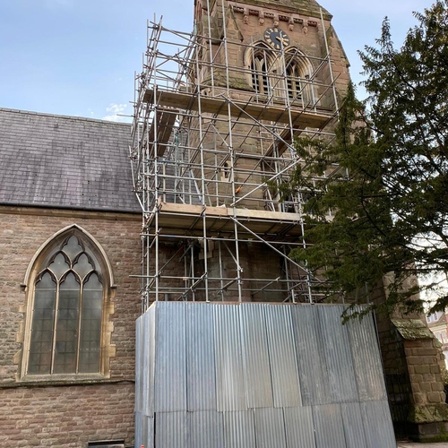 Portway Scaffolding has been tasked to provide a high level access platform to the underside of an atrium on a new prestigious head office building. The design is complicated due to the differing depths of ring beam steel, so in one area the 750mm beams are connected directly to the underside of the steel frame, in other area they are connected to scaffold tube, hung from the underside of the steel frame. The design has had to take into account the reduced capacity of the steel frame. Temporary access scaffold has been erected to the perimeter of the atrium one level below the roof with a 5 board wide cantilever, so that our scaffolders can walk the beams through and connect them to their final fixing point. Due to the reduced loadings of the ground slab, we are using a JLG x25 to act as