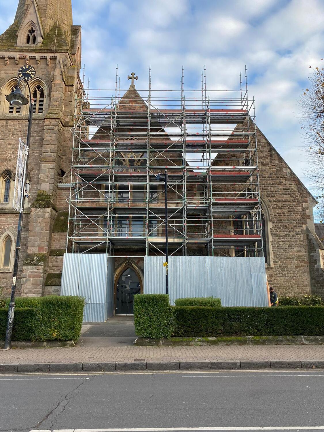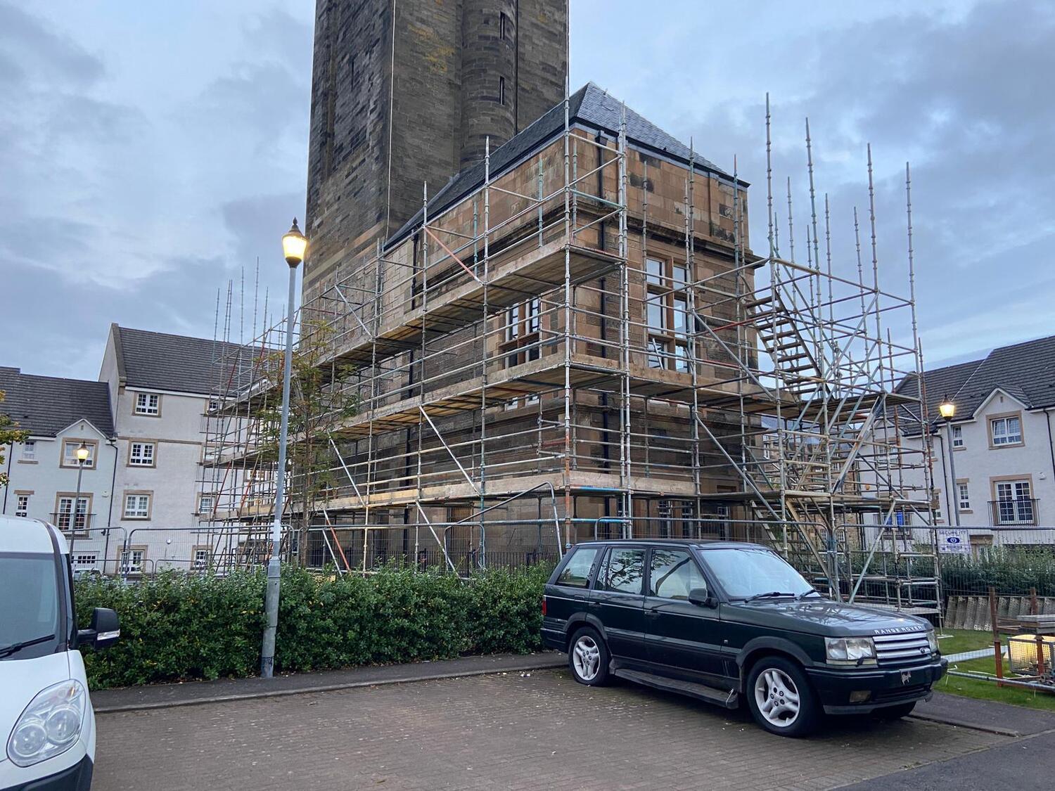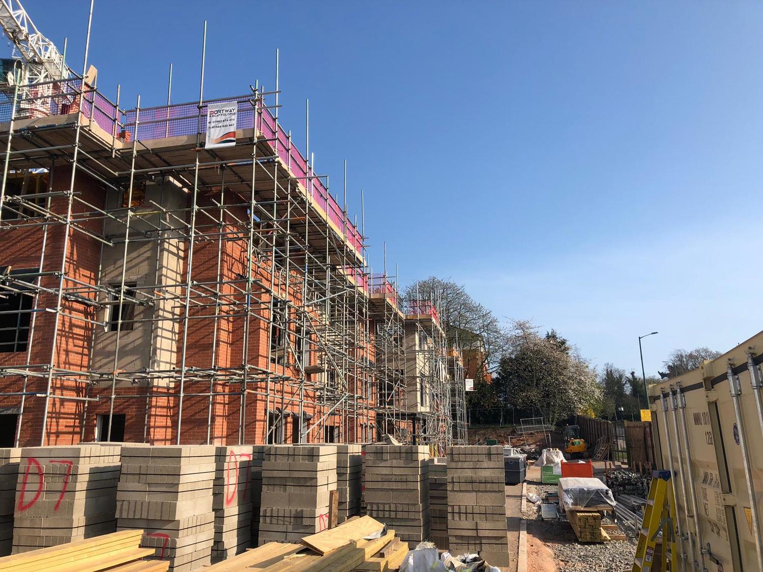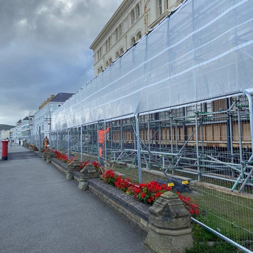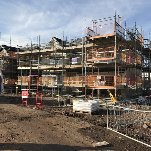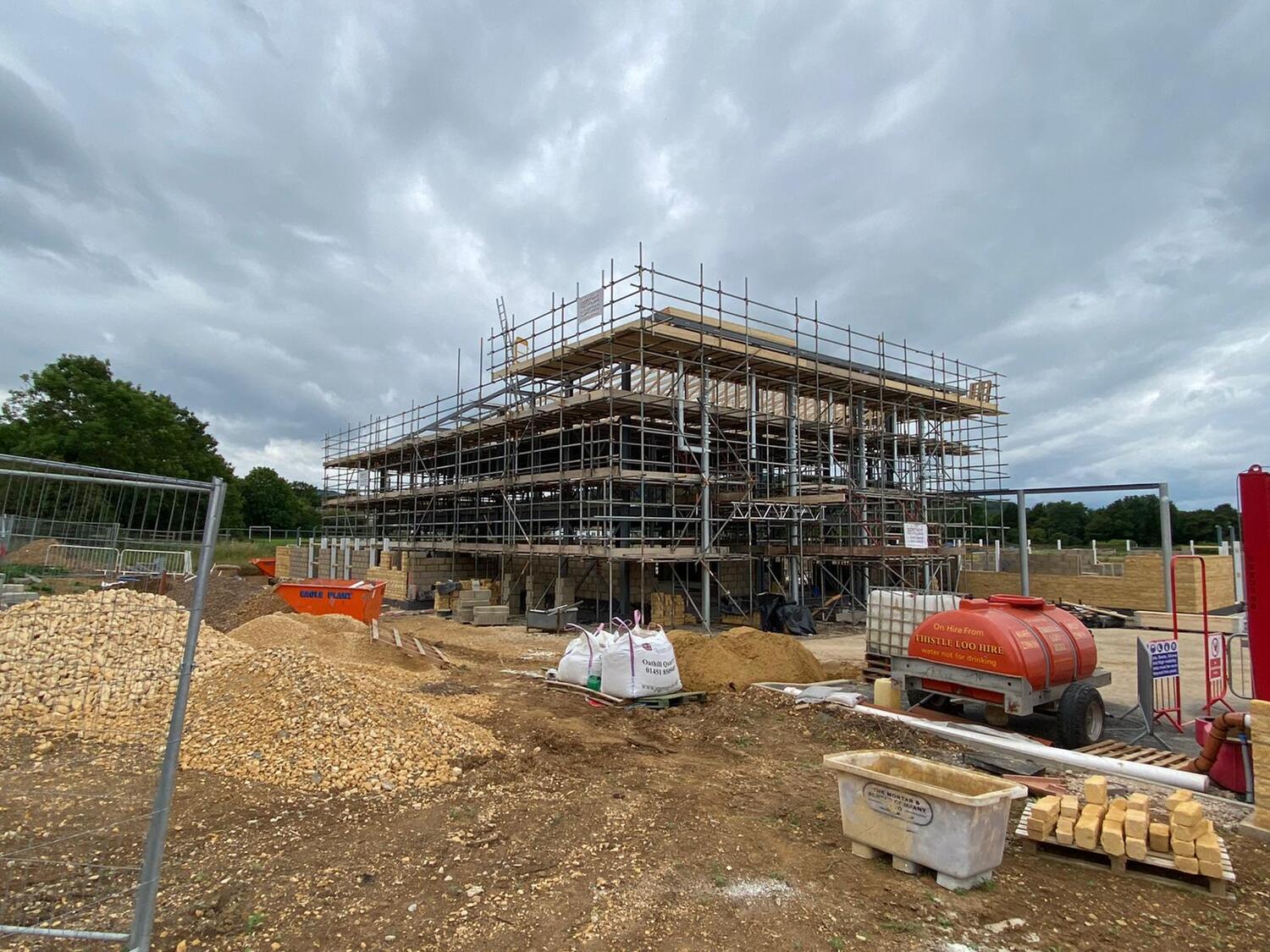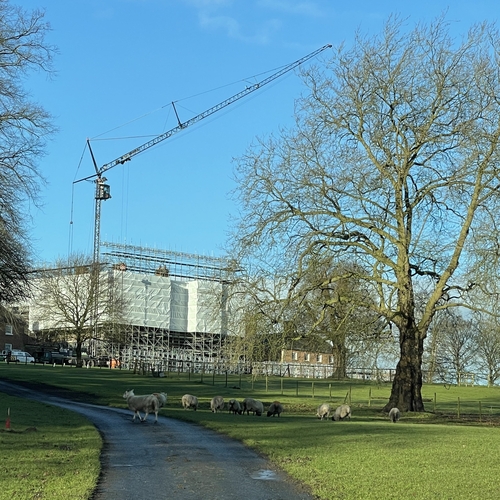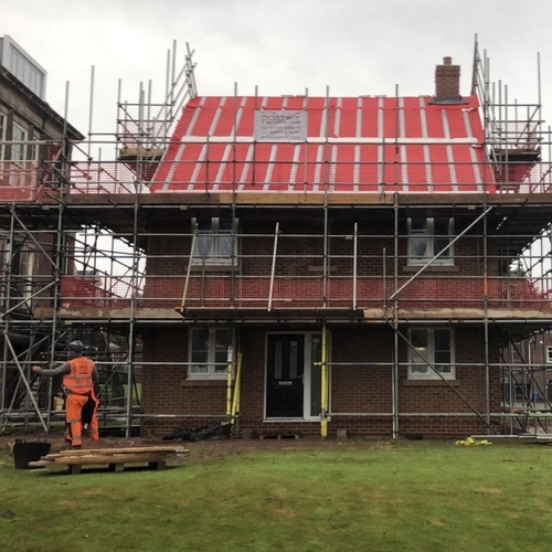 Portway Scaffolding has been tasked to provide a high level access platform to the underside of an atrium on a new prestigious head office building. The design is complicated due to the differing depths of ring beam steel, so in one area the 750mm beams are connected directly to the underside of the steel frame, in other area they are connected to scaffold tube, hung from the underside of the steel frame. The design has had to take into account the reduced capacity of the steel frame. Temporary access scaffold has been erected to the perimeter of the atrium one level below the roof with a 5 board wide cantilever, so that our scaffolders can walk the beams through and connect them to their final fixing point. Due to the reduced loadings of the ground slab, we are using a JLG x25 to act as