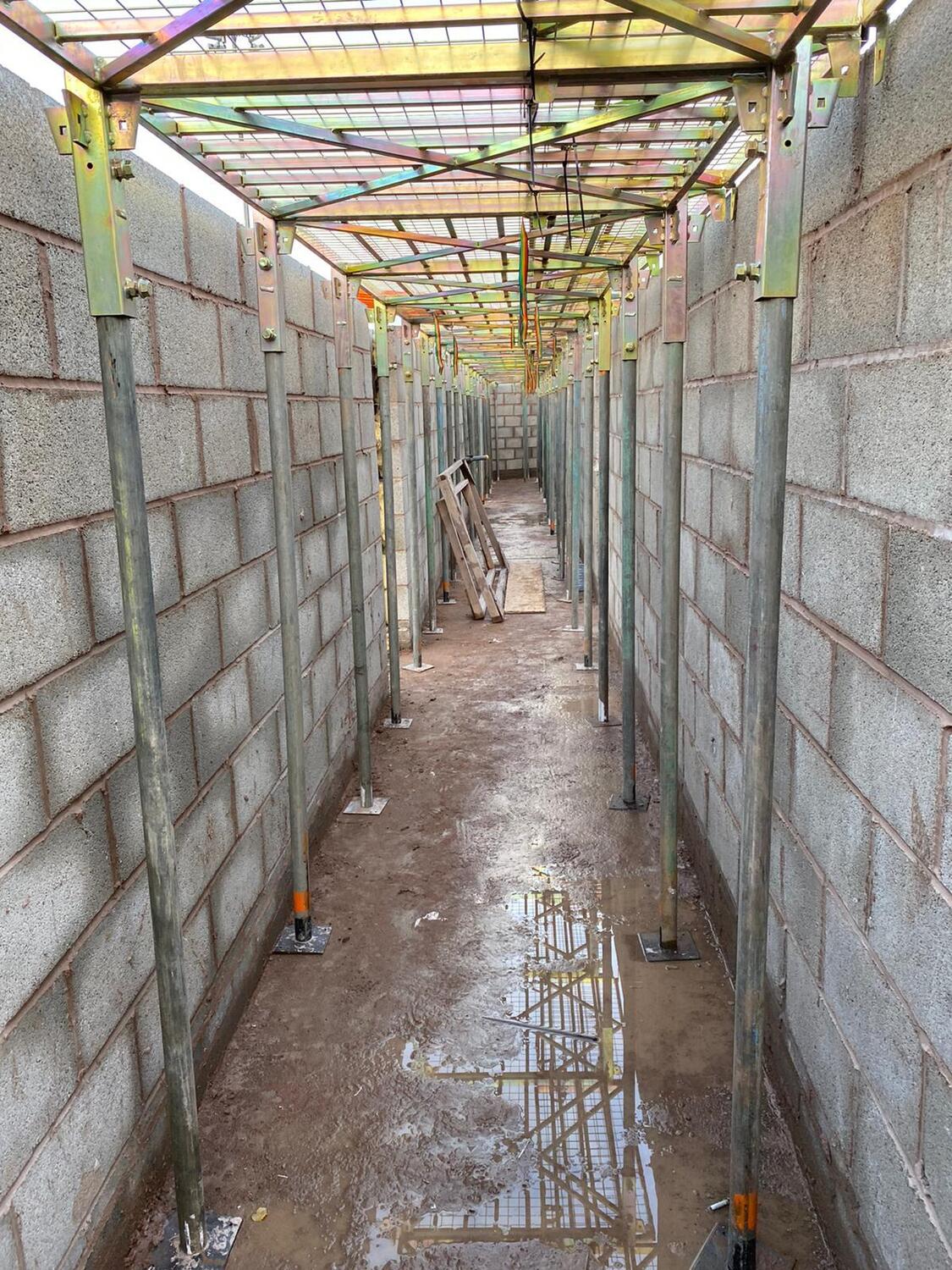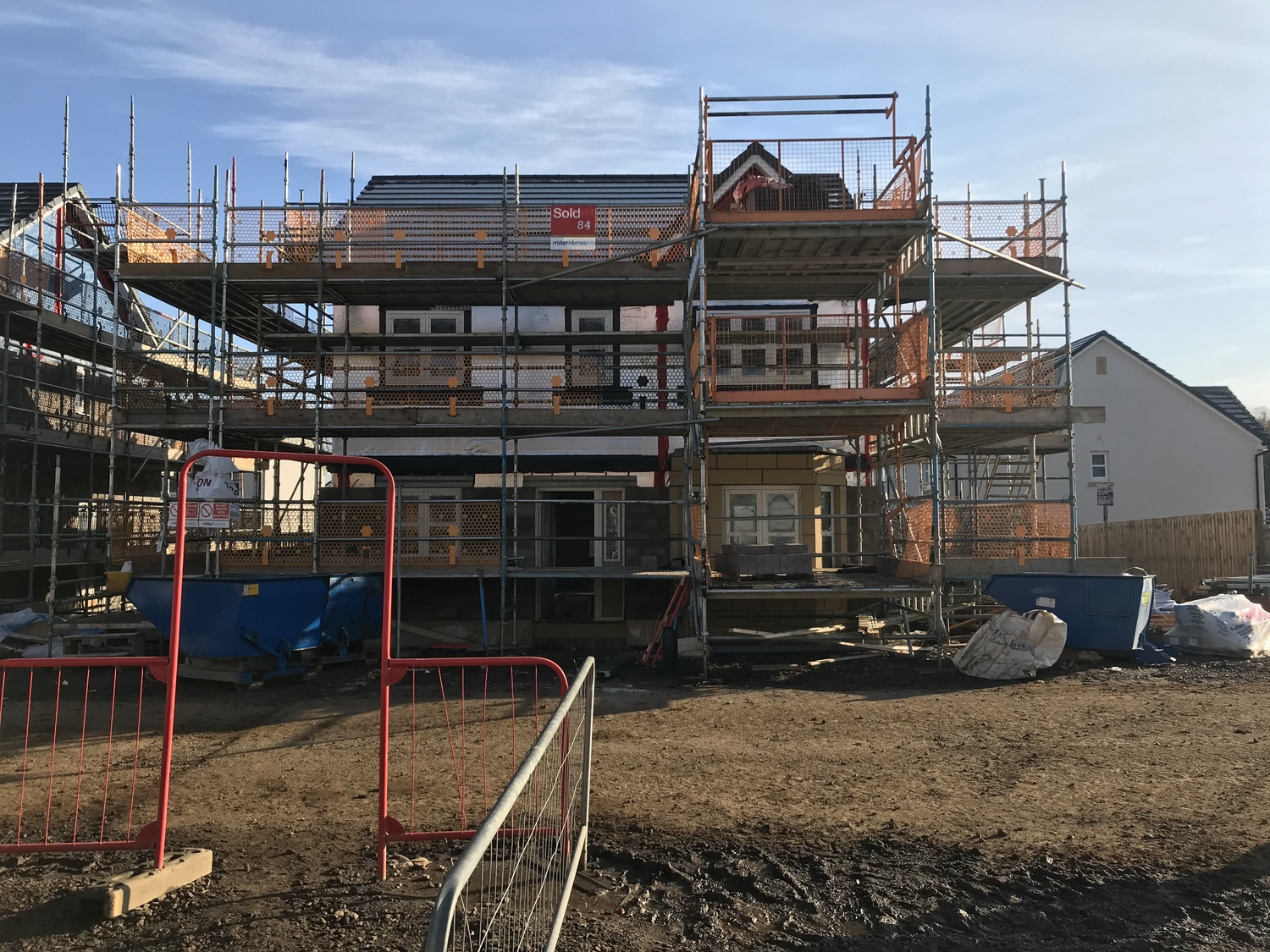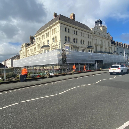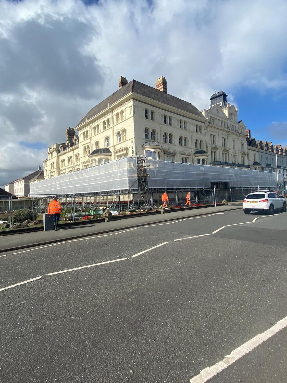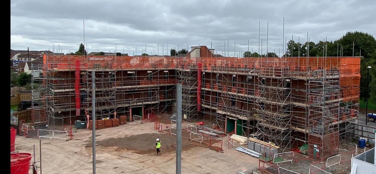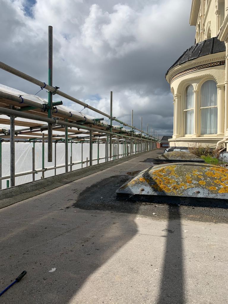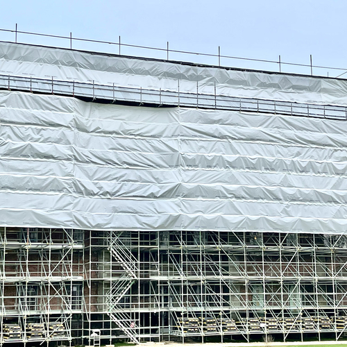 Portway Scaffolding has been tasked to provide a high level access platform to the underside of an atrium on a new prestigious head office building. The design is complicated due to the differing depths of ring beam steel, so in one area the 750mm beams are connected directly to the underside of the steel frame, in other area they are connected to scaffold tube, hung from the underside of the steel frame. The design has had to take into account the reduced capacity of the steel frame. Temporary access scaffold has been erected to the perimeter of the atrium one level below the roof with a 5 board wide cantilever, so that our scaffolders can walk the beams through and connect them to their final fixing point. Due to the reduced loadings of the ground slab, we are using a JLG x25 to act as