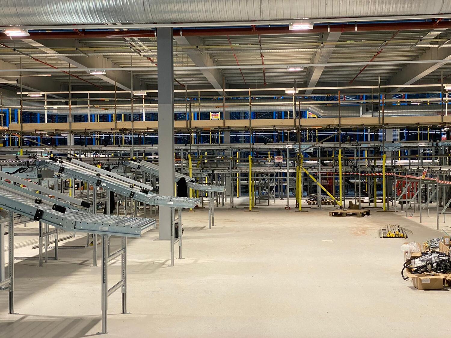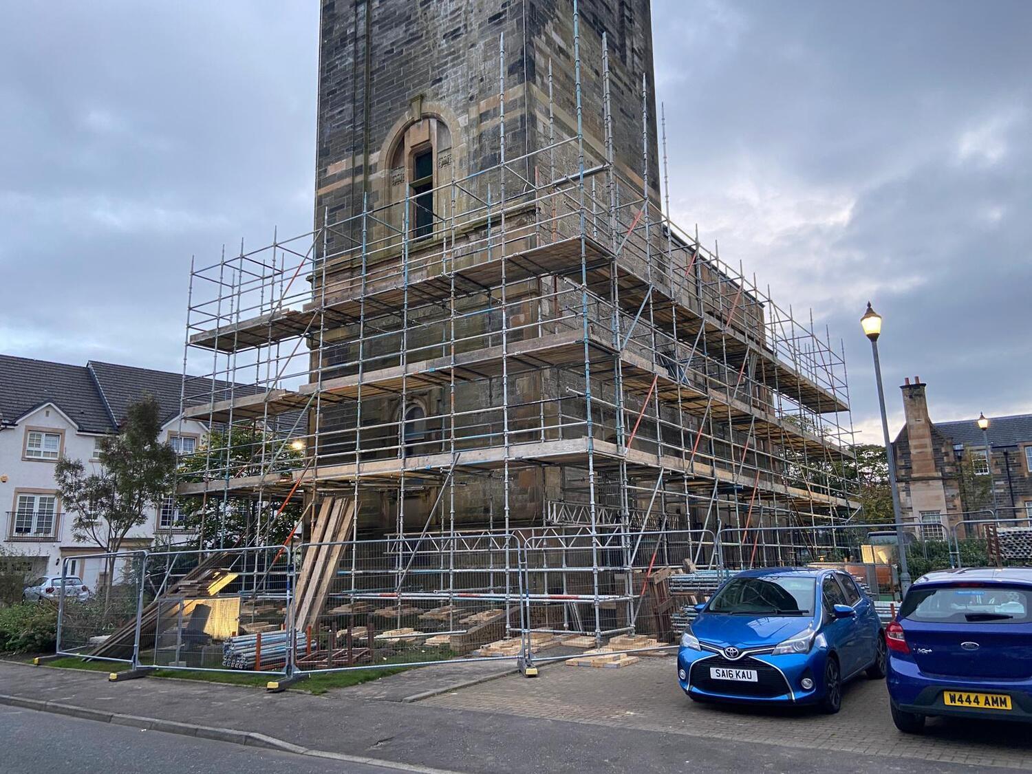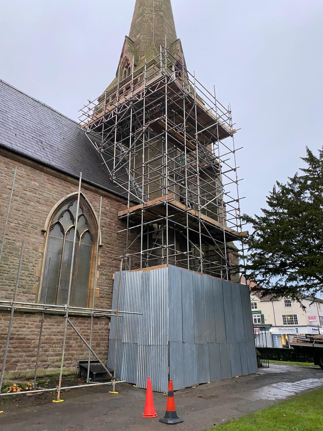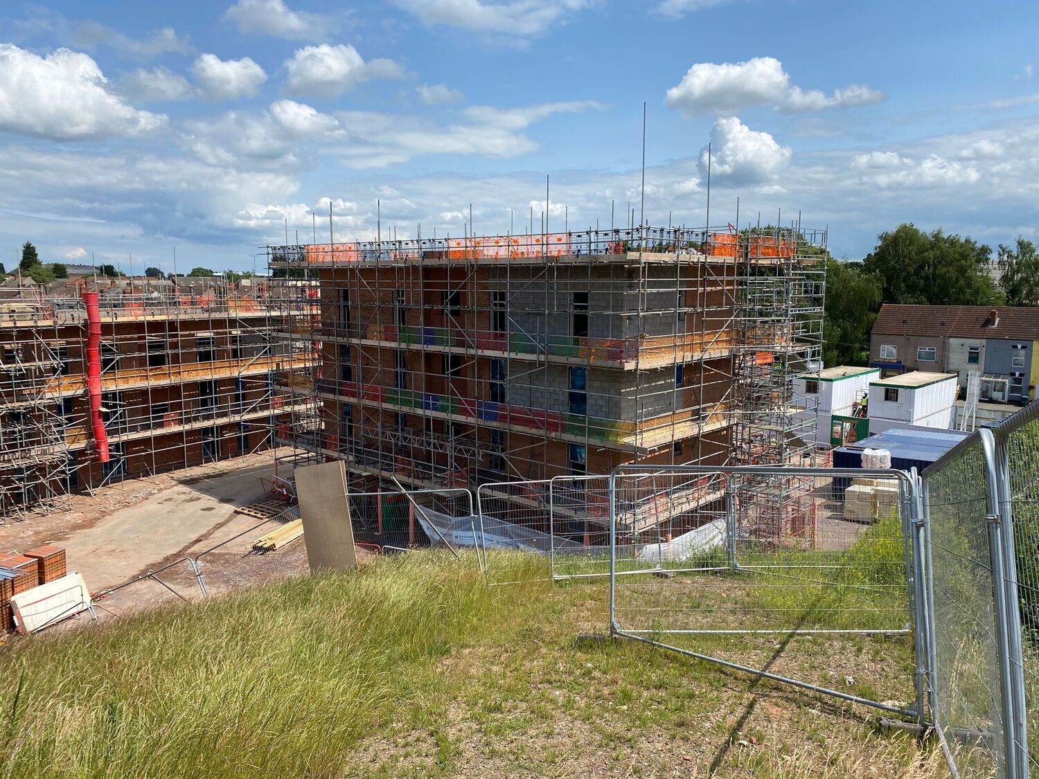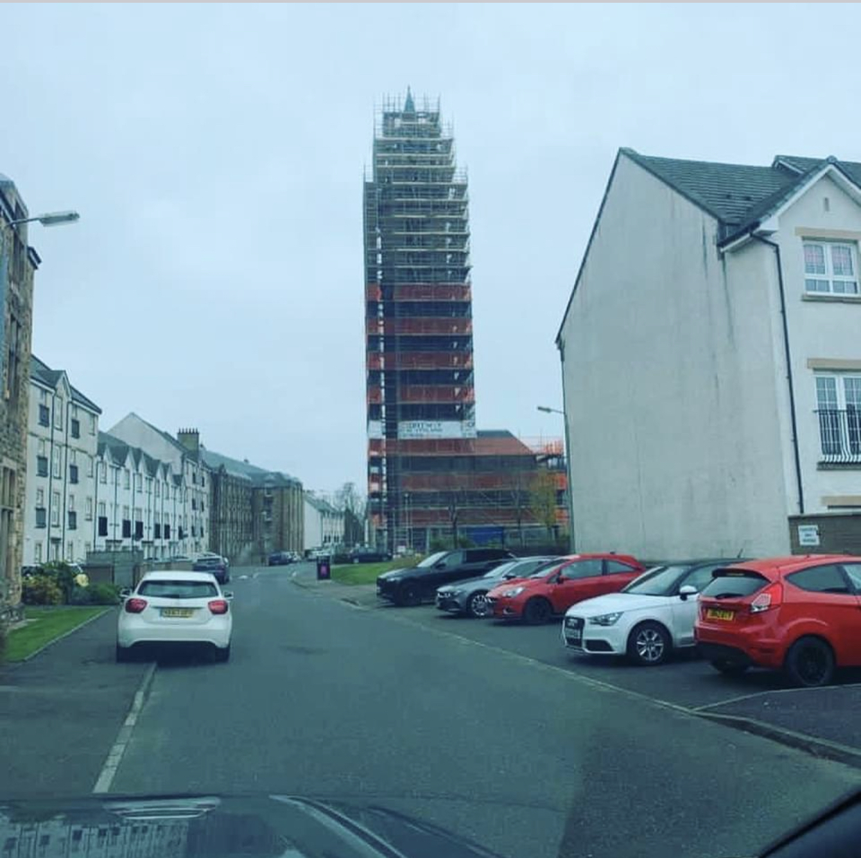 Portway Scaffolding has been tasked to provide a high level access platform to the underside of an atrium on a new prestigious head office building. The design is complicated due to the differing depths of ring beam steel, so in one area the 750mm beams are connected directly to the underside of the steel frame, in other area they are connected to scaffold tube, hung from the underside of the steel frame. The design has had to take into account the reduced capacity of the steel frame. Temporary access scaffold has been erected to the perimeter of the atrium one level below the roof with a 5 board wide cantilever, so that our scaffolders can walk the beams through and connect them to their final fixing point. Due to the reduced loadings of the ground slab, we are using a JLG x25 to act as