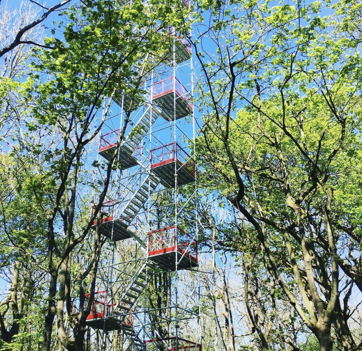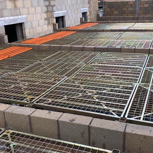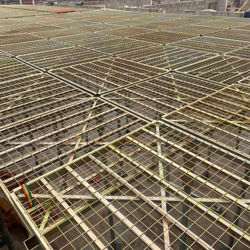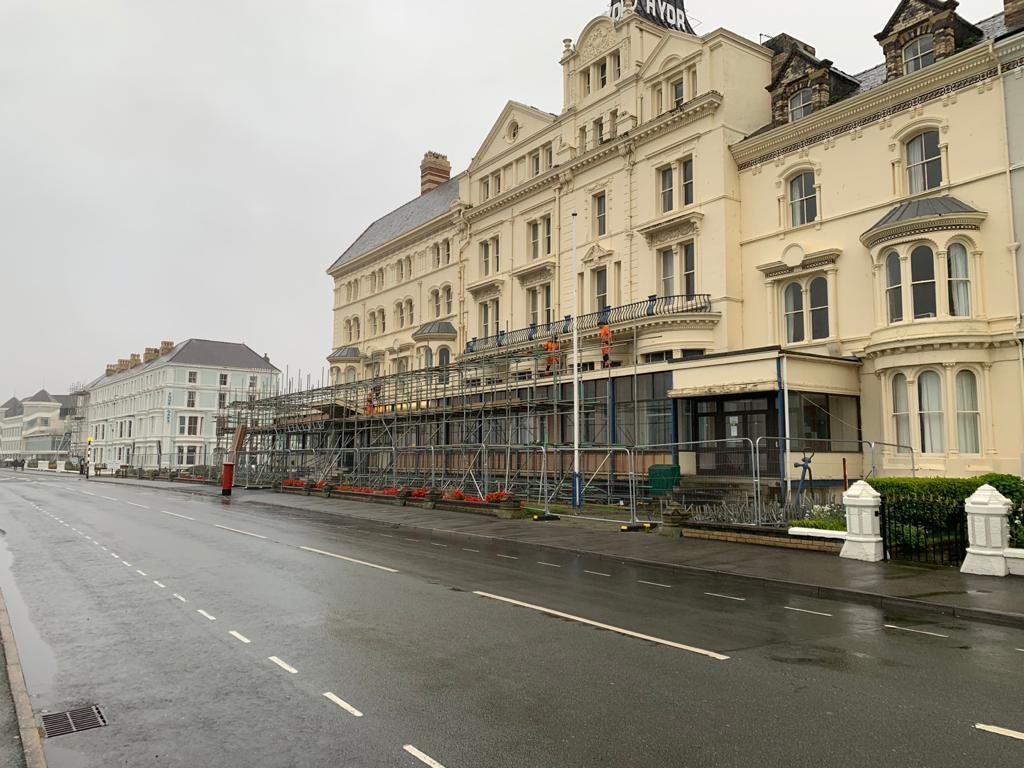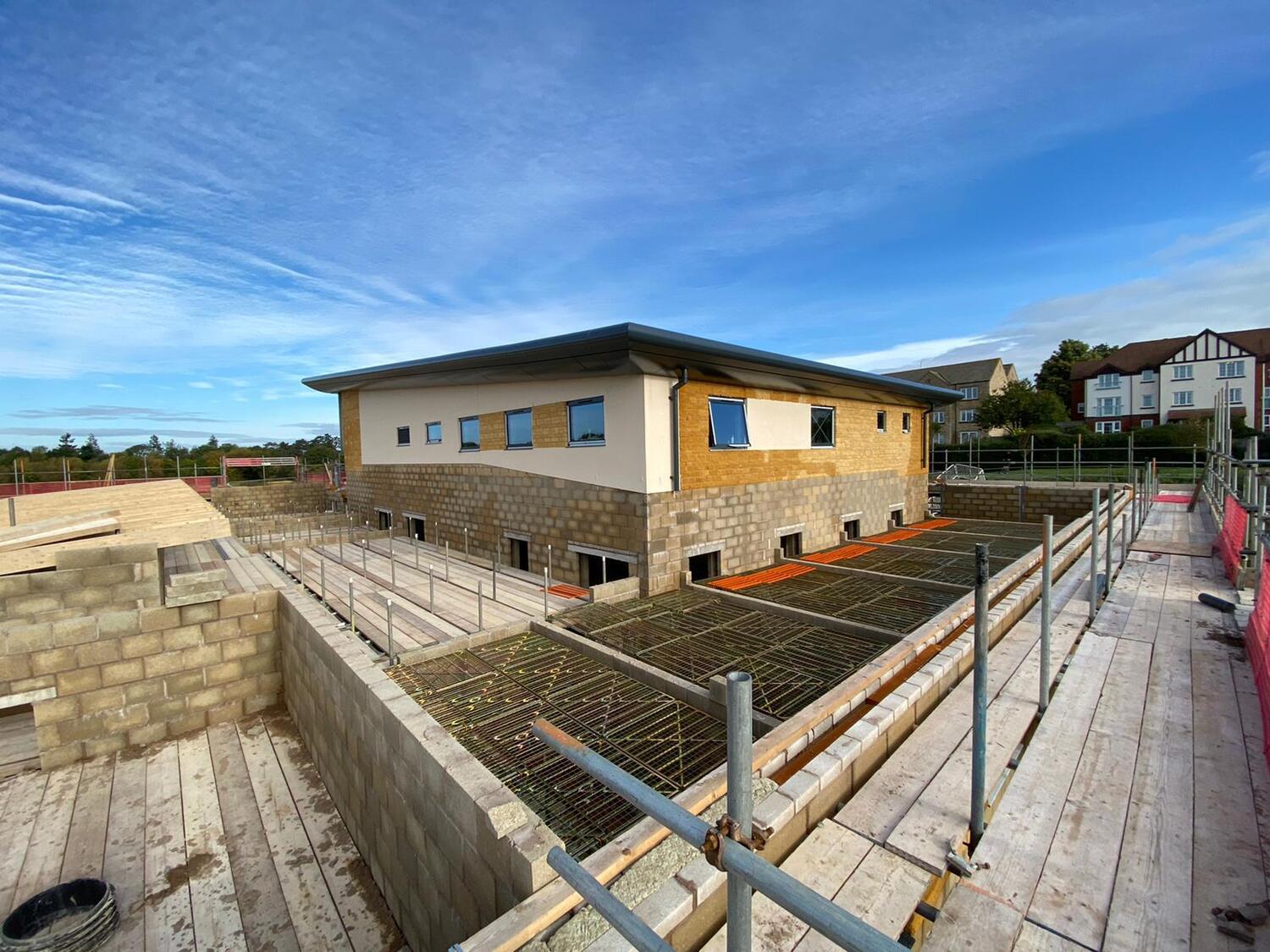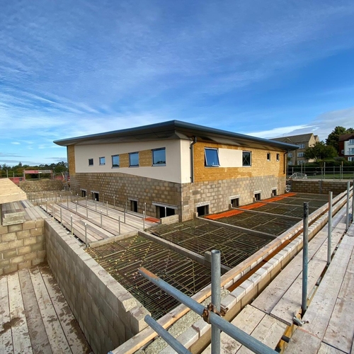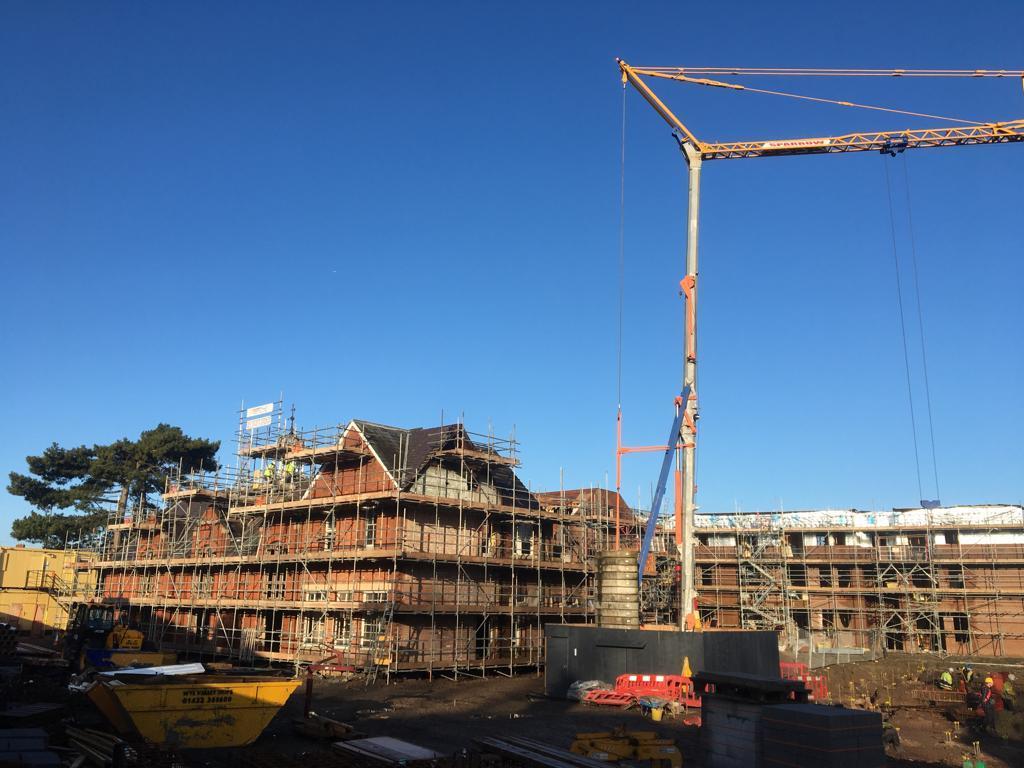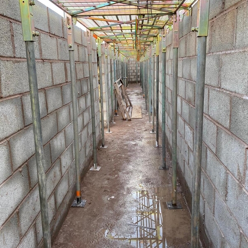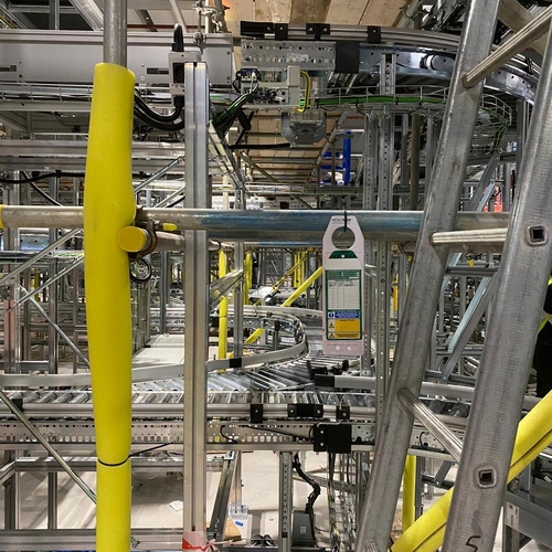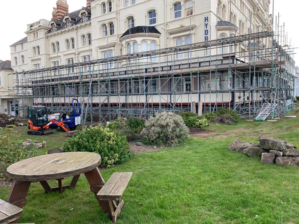 Portway Scaffolding has been tasked to provide a high level access platform to the underside of an atrium on a new prestigious head office building. The design is complicated due to the differing depths of ring beam steel, so in one area the 750mm beams are connected directly to the underside of the steel frame, in other area they are connected to scaffold tube, hung from the underside of the steel frame. The design has had to take into account the reduced capacity of the steel frame. Temporary access scaffold has been erected to the perimeter of the atrium one level below the roof with a 5 board wide cantilever, so that our scaffolders can walk the beams through and connect them to their final fixing point. Due to the reduced loadings of the ground slab, we are using a JLG x25 to act as